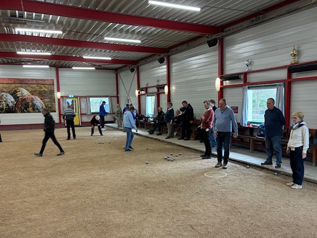 We hadden deze keer toch 32 teams met veel afmeldingen en daarvoor invallers kunnen vinden. Goed weer dus alle teams konden om 10 uur beginnen. Er waren 2 poules van 10 en een poule van 12 gevormd. Ook deze keer weer lange partijen omdat de bezettingen in de poules gelijkwaardig waren. Het nadeel daarvan is natuurlijk dat het einde ook wat later is. De B poule was als eerste klaar en hebben 1 1/2 uur moeten wachten op de prijsuitreiking.  Gelukkig hebben we een uitstekende bar en keuken brigade die de wachttijd met drankjes en hapjes kon oplossen. Deze keer had Lub Hoekstra gevraagd of hij voor zijn studie wedstrijdleider bij mij stage mocht lopen. Hij heeft een groot deel van de administratie gedaan en daardoor had ik zelf meer tijd om zelf naar een aantal mooie wedstrijden te kijken. Altijd fijn om een beetje hulp te hebben.
