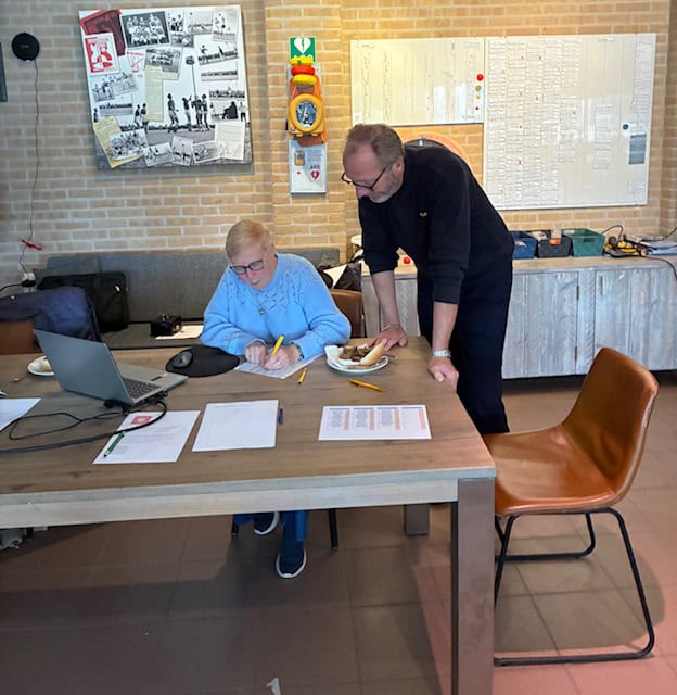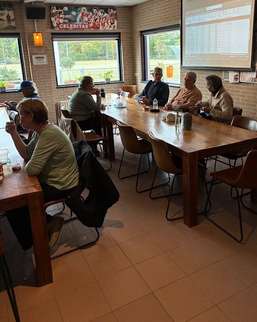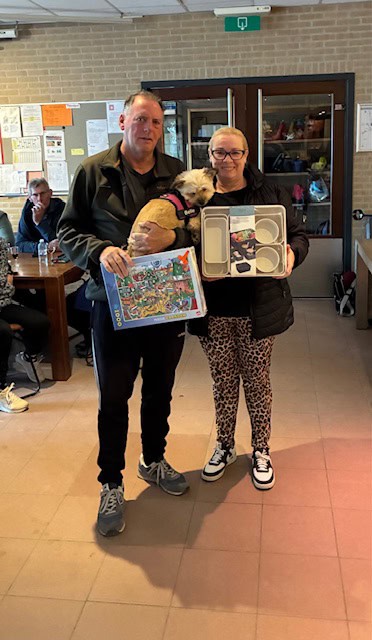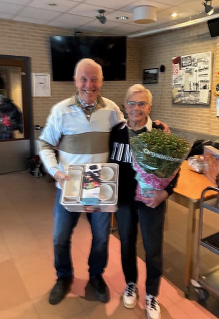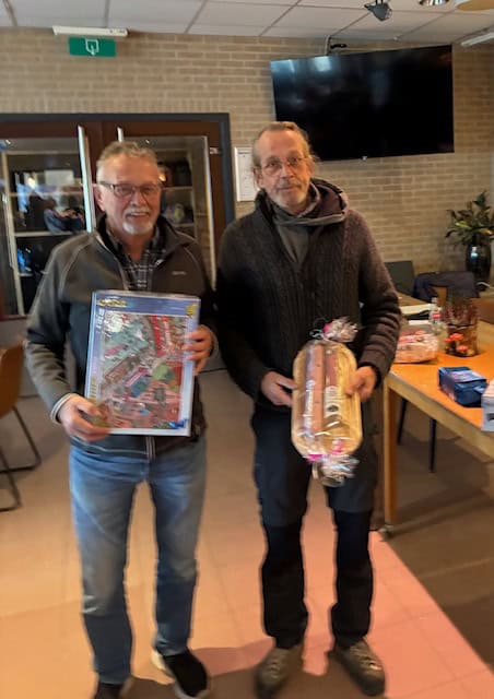 Nadat we onze kanjers van vrijwilligers in de keuken en bar René, Ton, Hans en Marja en de verzorgsters van de prijzentafel Betty en Hennie een warm applaus hadden gegeven kon ieder nog voor de ergste storm huiswaarts keren.