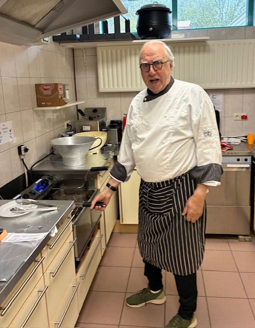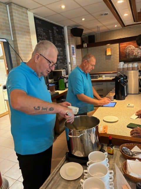De foto’s van de vrijwilligers in de bar en keuken: